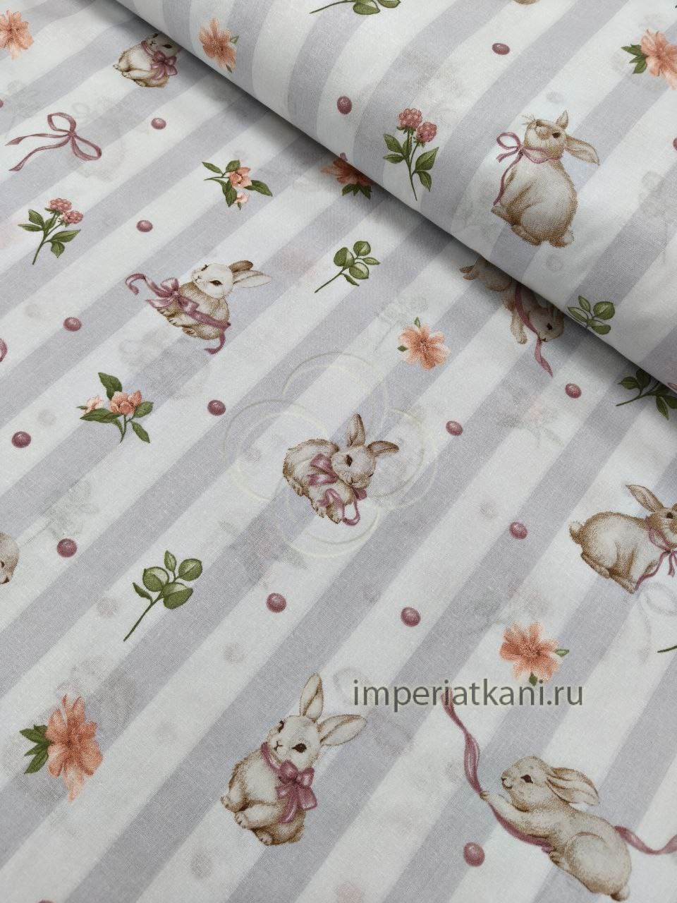 Перкаль «Зайцы на полосе» 140.00 ₽/метрШирина: 150 см;