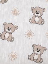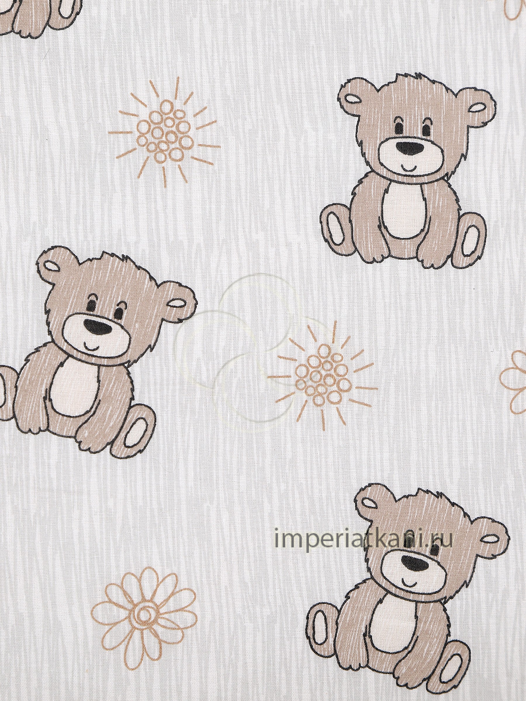 Детская перкаль «Мишка с ромашкой» шириной 150 см с изображением на ткани — мишки, ромашки; цветовая гамма: белая, белоземельная, серая. Опт от 30 000 руб., продажа рулонами.